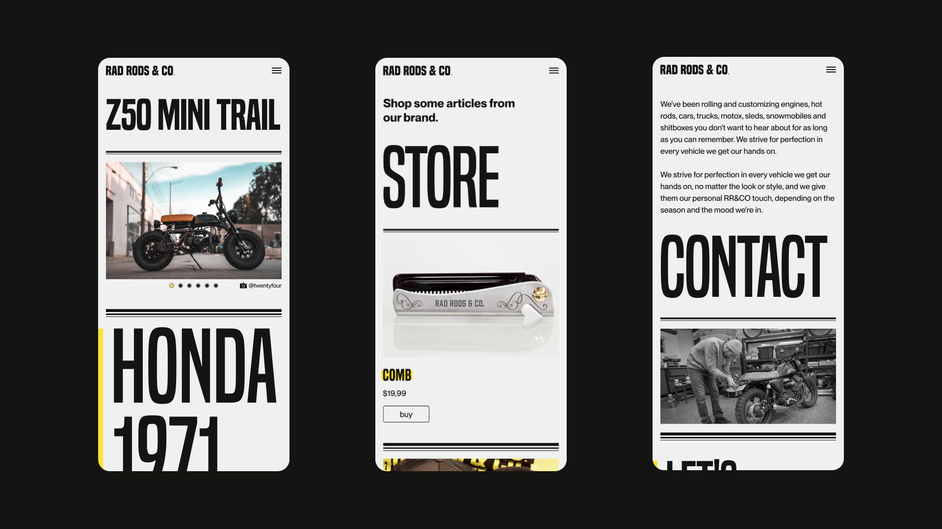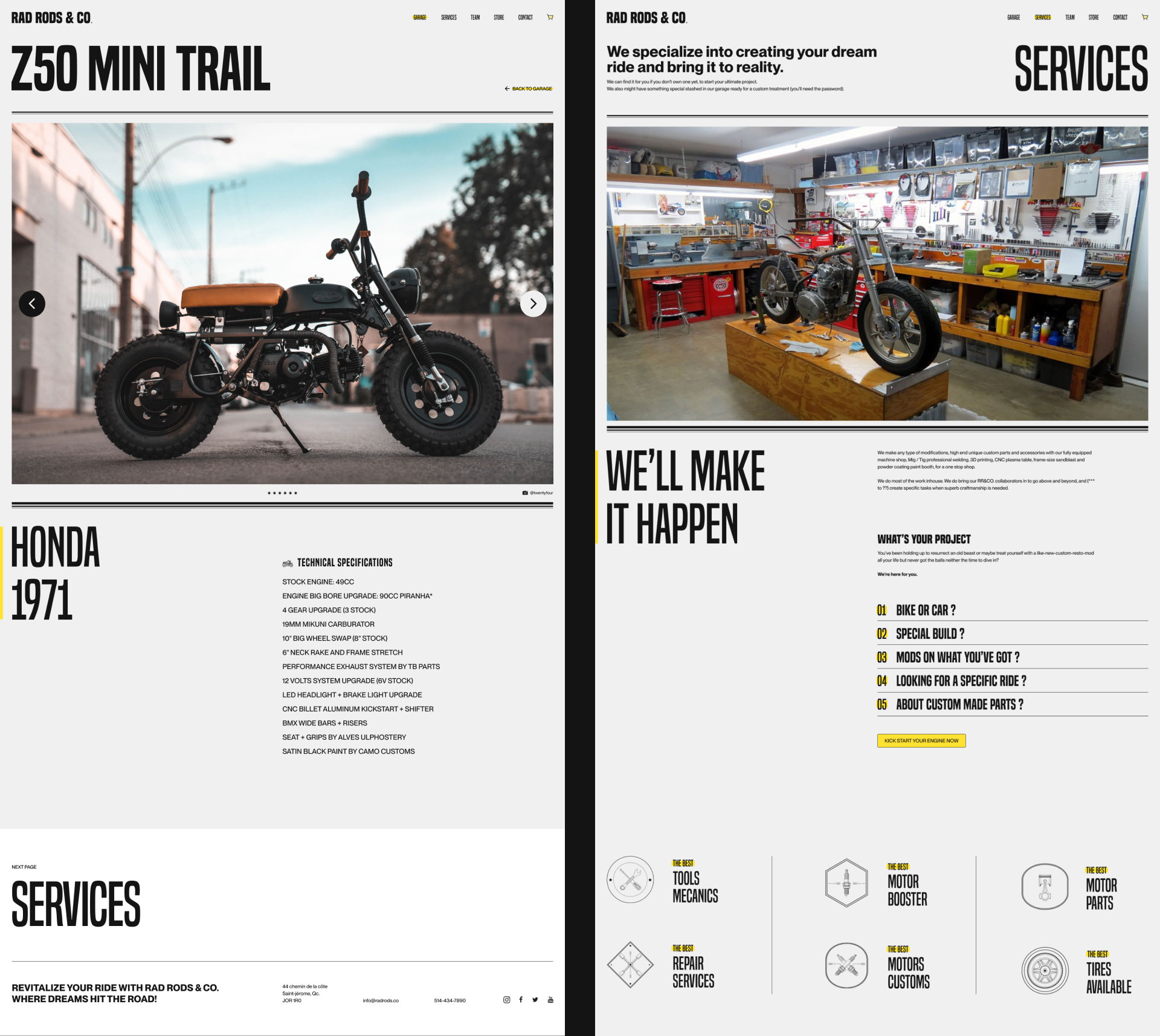 Rad Rods & Co. wanted to have a more representative website of their work and move away from Wordpress templates. I immediately told them since Rad Rods & Co. is a custombuilt shop they needed a custom website.